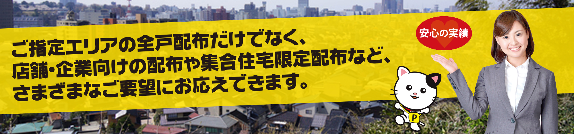 ご指定エリアの全戸配布だけでなく、店舗・企業向けの配布や集合住宅限定配布など、さまざまなご要望にお応えできます。